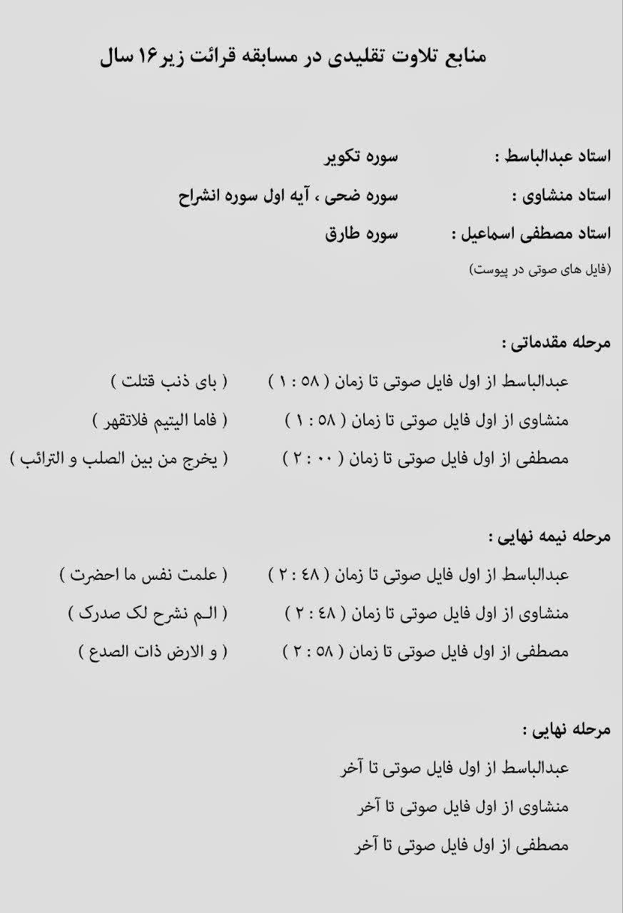 منابع مسابقه قرائت تقلیدی در مراحل مختلف مسابقه